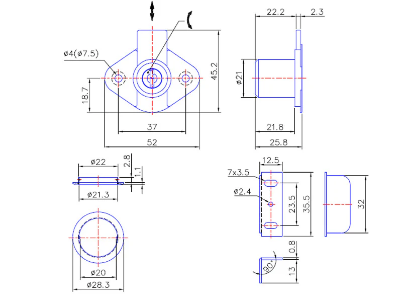 - Cut Out:Â Requires 21mm diameter hole